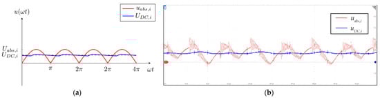 The circuit in Figure 9 averages the input waveform. The input of the circuit was the absolute sine waveform. Therefore, the average value UDC,i of the voltage can be calculated using: