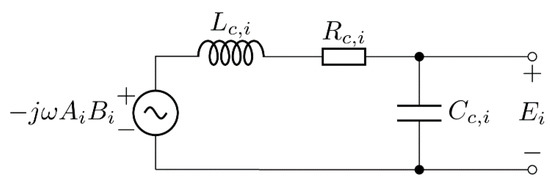 The search coil of the magnetometer can be modeled using the AC voltage source, self-inductance Lc,i, parasitic capacitance Cc,i, which includes search coil capacitance and parasitic capacitance of the first amplifier stage, and DC resistance Rc,i, where i = x, y, z. The circuit is presented in Figure 16. Induced voltage can be measured across the parasitic capacitance Cc,i using high impedance amplifier.