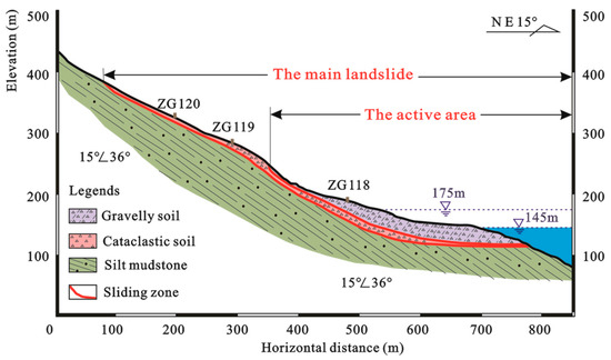 Schematic geological profile of the Baishuihe landslide (II–II’) © 2022 Springer Nature [10].