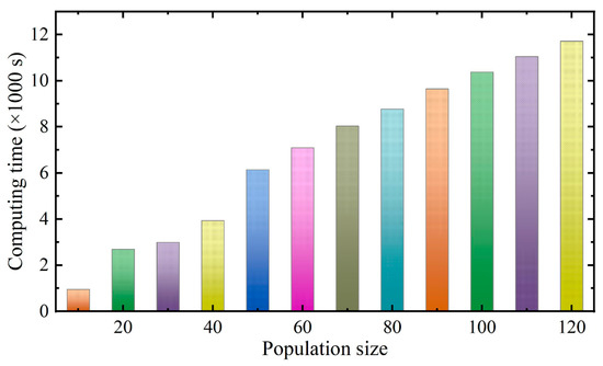 Computing time of different population sizes in MATLAB2019 software.