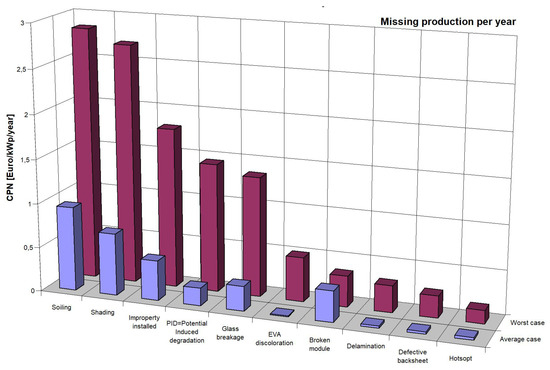 Missing electricity production due to various types of failure of solar panels [10].