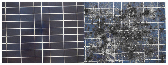 The most common problem is dirty panels, which translates into huge losses in energy generated [11,12], as shown in 1. The dust accumulated on the surface of the photovoltaic panel comes mainly from the soil, rocks, construction debris, particles from car traffic, bird droppings, and pollen [13]. Dust accumulation on the surface of the panels obstructs the light, preventing it from reaching the PV cells, reducing energy production [14,15]. The energy loss depends on the amount of dust, particle size, and chemical composition of the powder. Contaminants have different effects on the light transmission process. Some dust particles can reduce the efficiency of photovoltaic devices by up to 98 [16,17]. To effectively produce electricity using PV cells, it is necessary to ensure failure-free operation of the PV installation throughout its lifetime (even up to 30 years), and a quick return on investment outlays. For this purpose, it is necessary to develop a fast, reliable, and straightforward method of checking the cleanliness of PV cells [18,19].