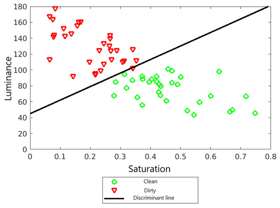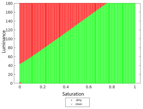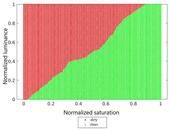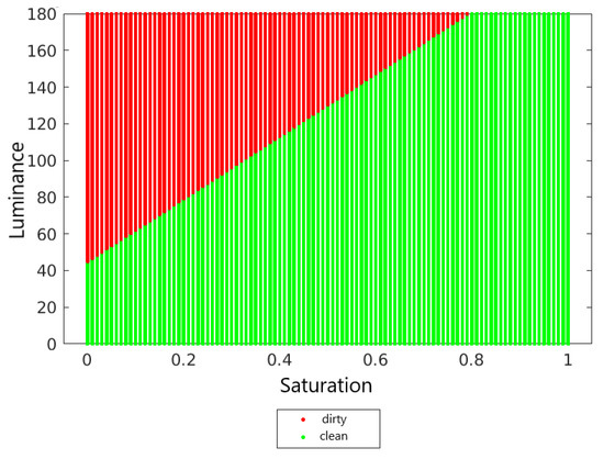 Average values of saturation and luminance for a clean and dirty panel.