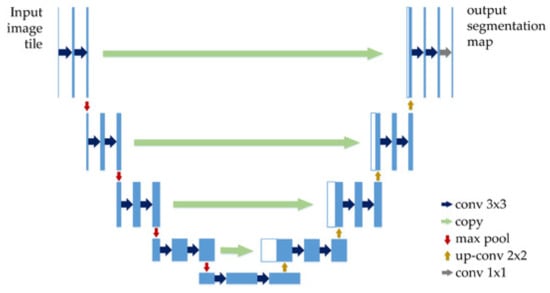 - Ronneberger, O.; Fischer, P.; Brox, T. U-Net: Convolutional networks for biomedical image segmentation. Lect. Notes Comput. Sci. 2015, 9351, 234–241. [Google Scholar]