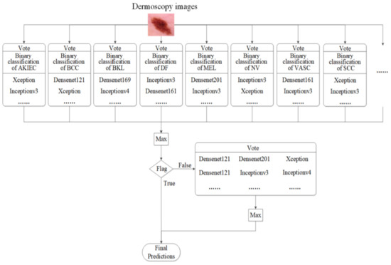 - Codella, N.; Nguyen, Q.-B.; Pankanti, S.; Gutman, D.; Helba, B.; Halpern, A.; Smith, J.R. Deep learning ensembles for melanoma recognition in dermoscopy images. arXiv 2016, arXiv:1610.04662. [Google Scholar] [CrossRef] [Green Version]