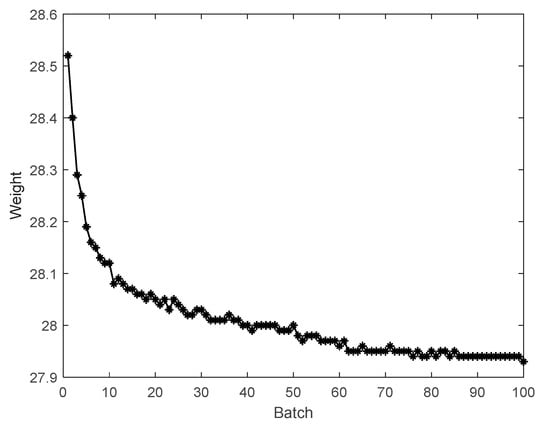 Since the system stabilized after 88 batches, the last window includes batches 58–87 in mode 1. All the windows in mode 1 are analyzed, and the average numbers of the batches that should be moved forward for each phase are similar among the windows, which are used for all windows in mode 1. Here, the average numbers of the batches that should be moved forward are 3, 3, 2, and 2 for the four phases.