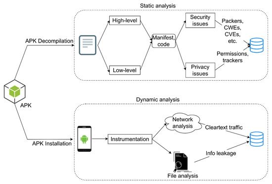 - Li, L.; Bissyandé, T.F.; Papadakis, M.; Rasthofer, S.; Bartel, A.; Octeau, D.; Klein, J.; Traon, L. Static analysis of android apps: A systematic literature review. Inf. Softw. Technol. 2017, 88, 67–95. [Google Scholar] [CrossRef] [Green Version]