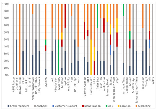 Most of the included apps are applicable to multiple devices, i.e., operate across all devices that belong to a specific IoT category. Interestingly, the majority of the apps, including Samsung SmartThings and MyFRITZ!App, can manage multiple devices across different IoT categories. Therefore, for instance, the MyFRITZ!App is included in the smart assistant IoT category, as being the more relevant one. Based on November 2021 data [2], the distribution of Android users across the different versions of this operating system (OS) is, 3.7%, 5.1%, 11.5%, 14.2%, 28.5%, and 33.3% for v6, v7, v8, v9, v10, and v11, respectively. For this reason, Android versions prior to v6 are excluded from this study.