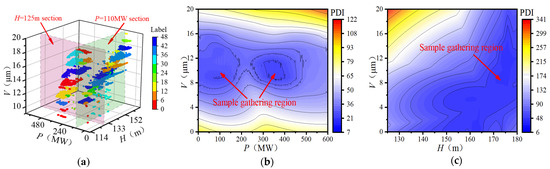 HSM based on GMM (a) Result of GMM clustering (b) PDI distribution on H = 125 m section; (c) PDI distribution on P = 110 MW section.