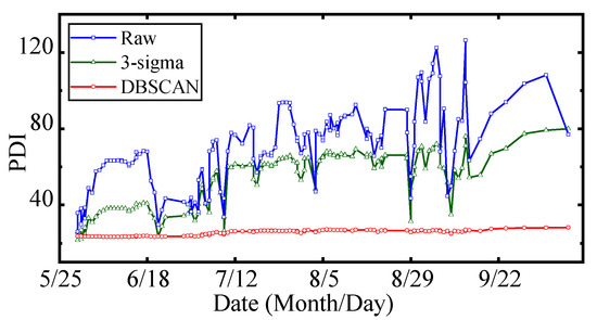 - A monitoring data set cleaning approach of FTUs based on DBSCAN is proposed to identify both the singulars and outliers, which enhances the stability and smoothness of the obtained PDI curve.