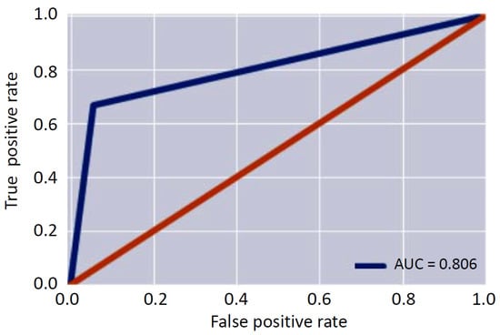 Starting from these metrics, the three figures of merit (AUC, F1 score and Binary Accuracy) were evaluated. In particular, the AUC was equal to 0.81, the score was equal to 0.96 and the binary accuracy was equal to 0.93. Figure 7 shows the resulting AUC. The obtained results confirmed the capability of the system to successfully identify the anomalies that can occur during the monitoring phase.