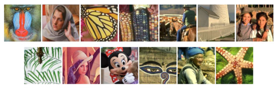 43] methods. All experiments were carried out on Intel (R) Core (TM) I7-6700 CPU and 3.40 GHz CPU PC under Matlab 2018B environment. The source code for all competing methods is open source, and we use the default parameter settings. The 13 images used for the experimental tests are shown in