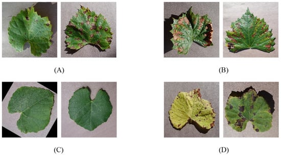 Few samples grape leaf image dataset. (A) Black rot leaf image; (B) Black_measles leaf image; (C) Healthy leaf image; (D) Leaf_blight leaf image.