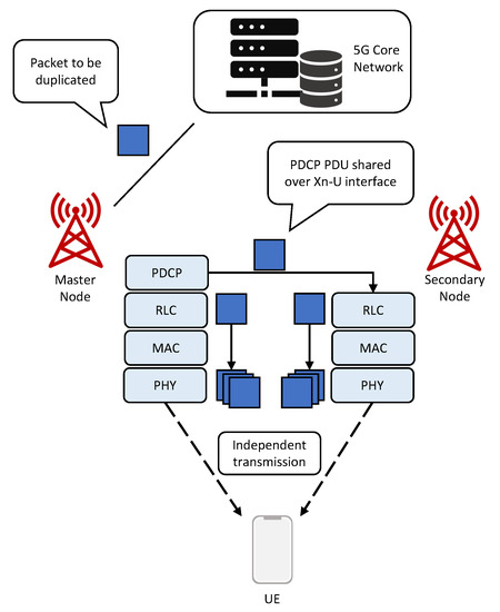 - Aijaz, A. Packet Duplication in Dual Connectivity Enabled 5G Wireless Networks: Overview and Challenges. IEEE Commun. Stand. Mag. 2019, 3, 20–28. [Google Scholar] [CrossRef] [Green Version]