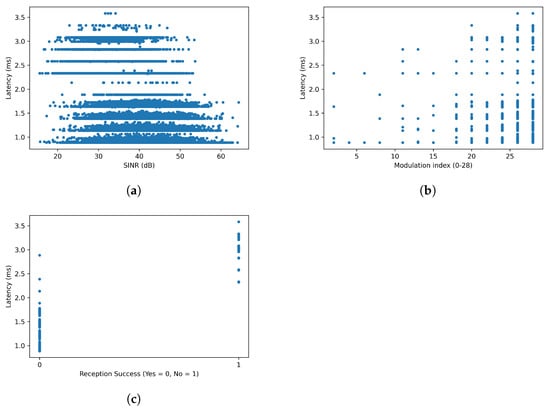 Latency samples. (a) SINR, (b) Modulation index and (c) Reception Success.