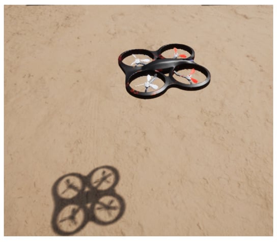 In this case, a simulation environment was created in the Unreal Engine 4 (UE4). The AirSim plugin was used to simulate the UAS camera and flight dynamics. The UAS model in the simulation environment can be seen in Figure 13.
