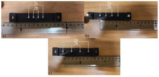 The experimental studies were carried out on the same subject, whose MRI images were used for numerical modeling. In the study, 3 different electrode systems were designed as shown in Figure 5. The distances between the current (2a) and measuring (2b) electrodes for each electrode system are illustrated in Table 4.