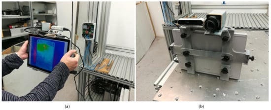 The MANTRA system consists of two cameras (RGB-D and infrared) mounted and aligned on a portable device that processes the information and displays it to the user. The infrared (IR) camera used in this analysis was a Xenics Gobi-640-GigE model (Xenics NV, Leuven Belgium) with a spatial resolution of 640 × 480 pixels that works in the 8 m to 14 m spectral band. The low weight (263 g) and size (49 × 49 × 79 mm) of the camera make it ideal as a hand-held device for carrying out maintenance inspections of industrial equipment. The second camera employed is an IntelRealSense d415 RGB-D camera (Intel Corp., Santa Clara, CA, USA) with a color resolution of up to 1920 × 1080.