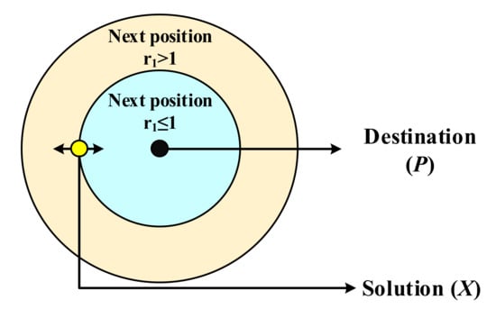 The parameter determines how far the movement of the particles has to go either towards or away from the destination. Similarly, the parameter specifies the goal to define the distance movement using the random weights to emphasize or de-emphasize them. The equations for generating these and values are given as