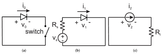 The current flowing through the diode can be determined by substituting (1) in the exponential IV model: