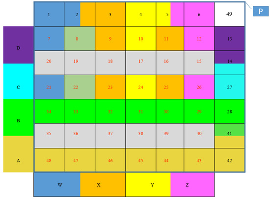The 4 ×4 sensors 2D array with overlapping arrangement of sensors A, B, C, D, W, X, Y, and Z, plus pressure sensor (P). Each color denotes the corresponding sensors in each tactel.