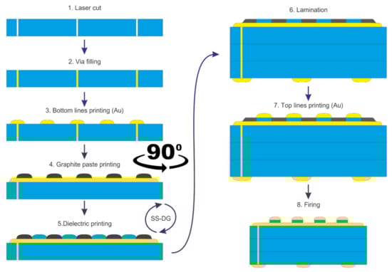- Jurków, D.; Maeder, T.; Dąbrowski, A.; Zarnik, M.S.; Belavič, D.; Bartsch, H.; Müller, J. Overview on low temperature co-fired ceramic sensors. Sens. Actuators A Phys. 2015, 233, 125–146. [Google Scholar] [CrossRef]