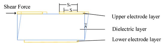 It is assumed that the tangential force is , the initial capacitance of the sensor is , the initial overlapping area is , the initial spacing is , the capacitance after change is C, the overlapping area after change is S, and the overlapping area change is S; thus, the capacitance change is: