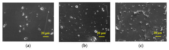 SEM observation of carbon black/PDMS composite: (a) carbon black content of 0.5 wt%; (b) carbon black content of 2 wt%; and (c) carbon black content of 4 wt%.
