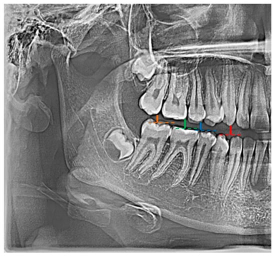 The pantomographic photos used in the research were taken with the Duerr Dental-VistaPano S Ceph camera which was equipped with an X-ray head with 0.5 mm focus and a digital sensor, Cls-CMOS matrix in DICOM 3.0 format supported by DBSWIN []. The measurements of tooth and bone parameters were performed in Open Source software ImageJ 1.52a []. Additionally, MS Excel 2007 spreadsheet was used to aggregate and structure the data obtained in the process of image processing and analysis, which also enables saving the data in *.csv format [].