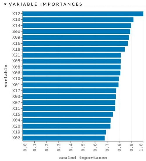Three deep neural network models were generated during the study: one for the learning set of women and men, and one each for the learning set of women and the learning set of men. During the modeling process, all 21 new indicators and the gender indicator were used []. After each model was generated, predictions were made for each entire learning set. The learning set of women and men contained 619 samples; the learning set of women contained 296 samples; and the learning set of men contained 323 samples. A sensitivity analysis of the variables was also conducted for each of the models that were generated.