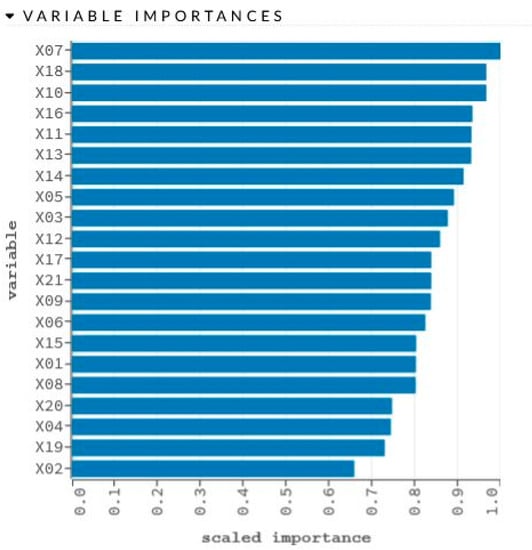 All prepared, original indicators were used to generate the models. None of the indicators had less than 0.5 significance. It should be noted that variable X02, X04, and X15 had a large variation compared to other indicators (Table 9). In the future, it is recommended to omit these variables from the network learning process. A summary and characterization of the indicators can be found in Table 10.