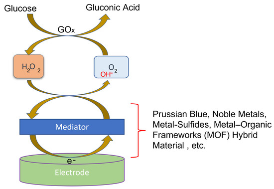 The layer of electrocatalytic mediator also plays a role in determining selectivity and sensitivity. The mediator should selectively react with the byproducts after the enzyme specifically oxidizes or dehydrogenizes glucose. Considering the target glucose concentration, an appropriate amount of mediator should be functionalized.