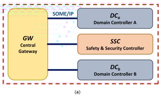 Although the studies of [19,20,21,22] involve automotive Ethernet, they focused on protocol conversion with security mechanisms. Moreover, the Ethernet protocol they used does not involve SOME/IP, an application layer protocol that follows Service-Oriented Architecture (SOA). The studies of [19,20] used Transmission Control Protocol (TCP) for Ethernet data forwarding, and the studies of [21,22] used IEEE 1722 for Ethernet data forwarding.