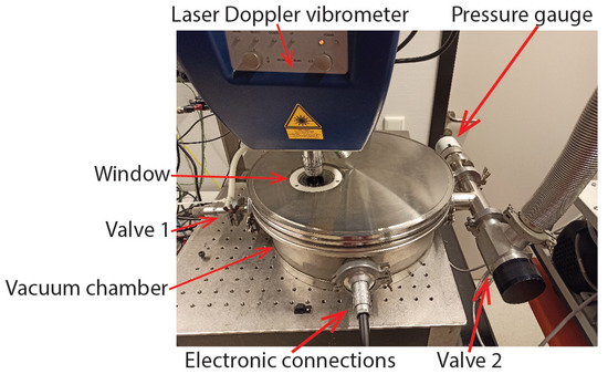Photograph of the vacuum measurement setup. The laser Doppler vibrometer is measuring through the window.