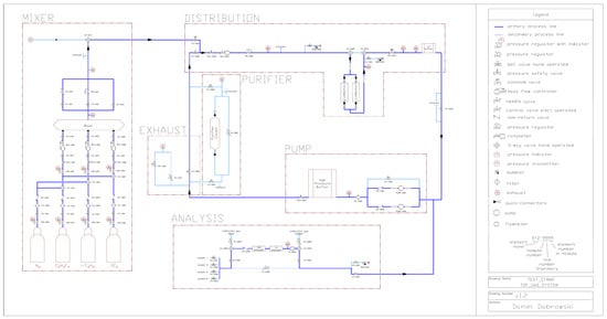 The individual components of the gas system are described below, presenting the existing test system in a pilot version. Figure 4 shows the test gas system in the form of the piping and Instrumentation Diagram (P&ID) drawing.