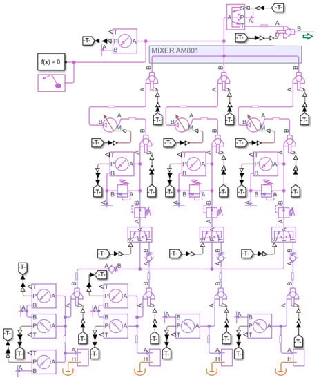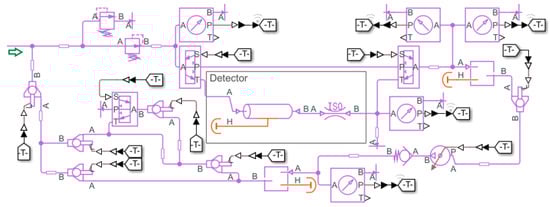As the main software for process simulation, the MATLAB software with Simulink and Simscape library is used. The main advantages of this toolset are the ability to simulate dynamic states and the flexibility of software development. The environment is extensively used to model the multidomain systems having complex interactions, such as mechanical and electrical systems [53,54], as well as for modeling the distribution of pressures, temperatures, and flows in gas and liquid systems [55]. In this project, simulation is designed with a connection to programmable logic controllers (PLCs) in mind.
