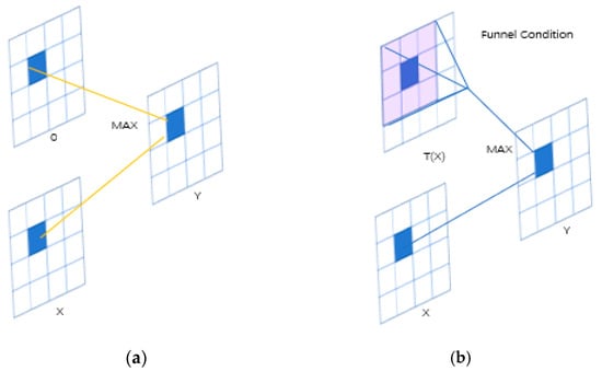 The FreLU activation function is based on the ReLU activation function, and adopts the simple nonlinear function Max (), which can be extended by adding a visual funnel condition T(x) to connect each pixel to the 2D environment, as shown in Figure 4.