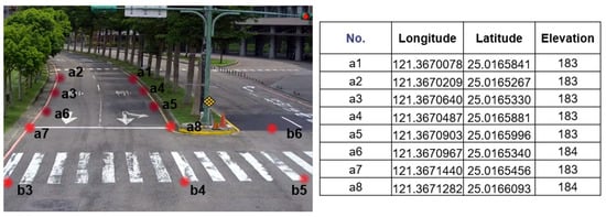 Under all cameras coverage, a geographic profile with latitude, longitude and elevation information is predefined in AI server, which is measured humanly by handheld Global Positioning System (GPS) tool, an example for one of four cameras is shown in Figure 5.