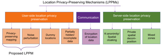 Location Privacy-Preserving Mechanisms (LPPM) intend to preserve the individual location privacy in scenarios where services request access to the users’ spatial location [11]. Location-Based Services (LBS) that collect sensitive information of the users’ locations, as described in the classification framework in [12], can benefit from implementing LPPM.