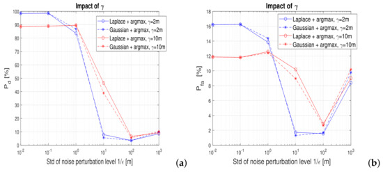 Figure 9 shows the utility (i.e., the detection probability) as well as the false alarm probabilities in the presence of various perturbations (argmin versus argmax and Gaussian versus Laplacian noises).