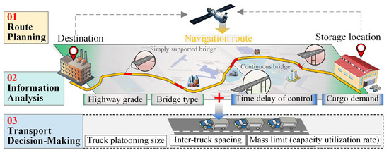 - Acquire the cargo volume from the supplier, determine the exact number of trucks required for transportation, and measure the time delay of the vehicular communication system to determine the stable inter-truck spacing that should be maintained.