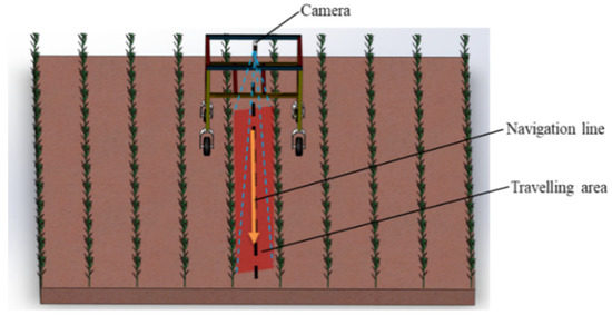 - Yang, Y.; Zhang, B.; Zha, J.; Wen, X.; Chen, L.; Zhang, T.; Dong, X.; Yang, X. Real-time extraction of navigation line between corn rows. Nongye Gongcheng Xuebao/Trans. Chin. Soc. Agric. Eng. 2020, 36, 162–171. [Google Scholar]