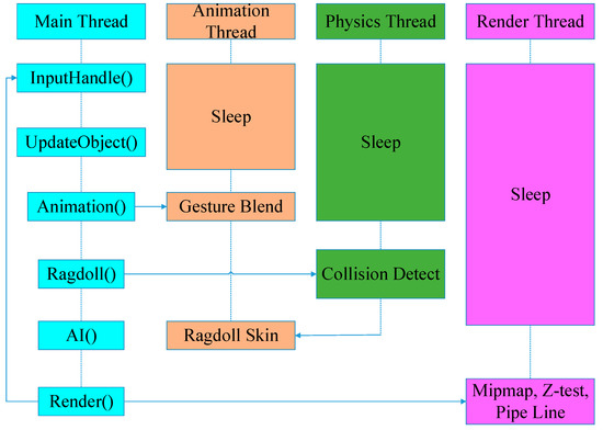 Large 3D video games use multiple threads to interact with the main thread (Figure 1). Each thread implements several special functions that communicate with other threads. The thread rendering pipeline is used to draw game objects to the local screen. Moreover, an independent thread for network data synchronization can be used to verify whether the game data is modified in the multiplayer online environment.