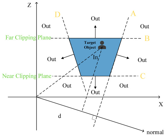 In the trapezoidal scenario (Figure 2), BSP (binary space partition) can be used to rapidly retrieve target objects, while most of the objects are outside the visual range. Both Figure 3 and Algorithm A2 in Appendix A describe the retrieval process. The objects outside the trapezoid will be displayed in the mini-map; meanwhile, the objects inside the trapezoid will be displayed in the main window of the local player.