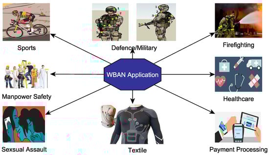 Wireless networks have become an indispensable part of social, defense and healthcare applications. These applications have received very swift support from different wireless network interfaces such as Personal Area Network (PAN), Body Area Networks (BAN), WiFi 802.11, WiMAX and cellular [1,2]. These technologies are extensively being used in healthcare systems [3]. In addition, they are also very benign in social gatherings, which can be envisioned from the popularity of wireless communication when friends or guests are sitting at a coffee cafe or hotel and share some information using WiFi or Bluetooth; passengers can pay for their tickets at a ticketing booth while connecting their mobile or smartphone to the electronic booth wirelessly. Similarly, it has also been observed that passengers traveling on a train or bus have demonstrated a need to have a hotspot (ad hoc network) of mobiles and smartphones for data sharing. In addition to all that usage, the application market of mobile and smartphones is becoming saturated day by day, and novel paradigms in mobile devices and sensors are arising in different dimensions of human life. These are basically the wireless wearable body area networks [4], which are assuring the improvement in the quality of human health, which was not possible for smartphones and mobiles to achieve alone. The terms “wearable”, “wearable devices”, “wireless BAN (Body Area Network)” or “wearable technology” are interchangeable. Similarly, wireless wearable body area networks and wearable wireless body area networks are also used interchangeably in the literature. These terms refer to small electronic or mobile devices, microchips, or other computing devices that possess the capability of communicating data wirelessly. Furthermore, these devices are fabricated into gadgets, clothes, or accessories that can be worn, patched on the body, or devices that can be implanted, injected or ingested in the body [5].