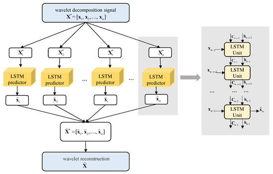 Wavelet transform often plays a positive role in time series prediction models [22,23,24]. As stated in [25], wavelet transform is an adaptive time-frequency domain analysis method that can effectively deal with non-stationary time series and non-Gaussian noise and is an effective data enhancement method. For complex sequences, combining wavelet transform with a prediction model has been a widely used data enhancement method, which can effectively improve the accuracy of prediction results [26]. In addition, wavelet transform has a better processing effect for non-stationary signals such as magnetic field measured by a magnetometer [27]. Therefore, based on the good time-frequency localization ability of the wavelet [22], we use wavelet decomposition to decompose the magnetic field data into different scales and obtain the near-periodic expression. We feed signals of different scales into the LSTM network to obtain more accurate prediction results.