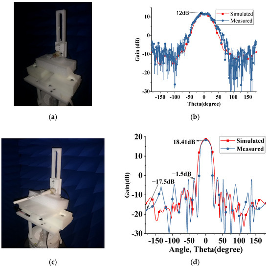 Figure 12a shows the return loss measurement of the prototype. It is seen from Figure 12b that the measured return loss is almost below −12 dB in the whole band. There still exists some difference between the simulated and measured results. This is mainly due to the fabrication errors of the helix, especially the deviation of the impedance-matching segment on the first turn.