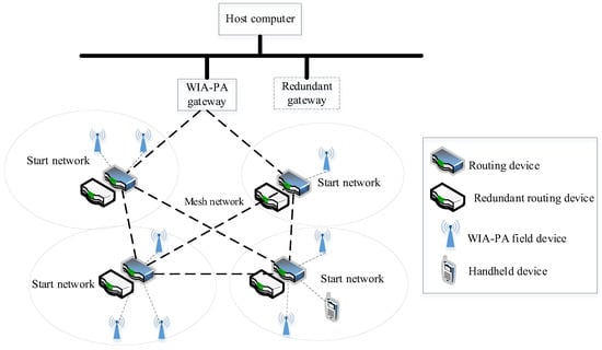 WIA-PA is a wireless network protocol for industrial process measurement, monitoring, and control. It is based on IEEE 802.15.4 and is standardized and approved as IEC 62601 by the IEC [21]. Its topology is shown in Figure 1.