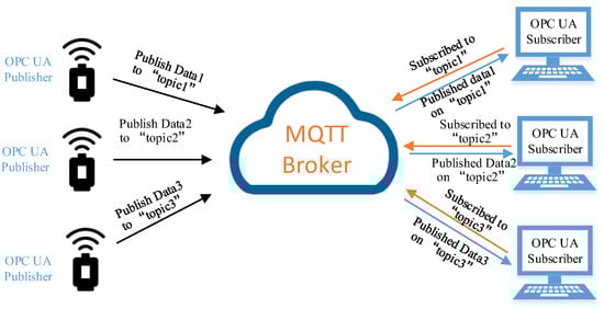 In summary, OPC UA pub/sub is deployed in the WIA-PA scheme in this paper as follows. MQTT broker-based OPC UA pub/sub is the broker transport protocol, and JSON and UADP are the message encoding formats. Furthermore, the coupling of OPC UA and the WIA-PA network is realized through the WIA-PA gateway.