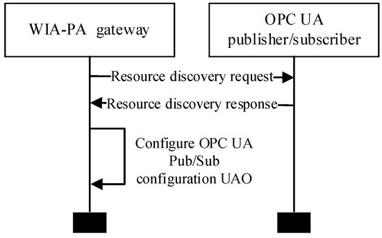After resource discovery, the discovered OPC UA pub/sub data source should undergo resource mapping. This process entails mapping the OPC UA publisher/subscriber information model to a pub/sub configuration UAO, which is in the WIA-PA gateway. Each OPC UA pub/sub configuration UAO corresponds to a publisher/subscriber. Therefore, through the WIA-PA protocol, the WIA-PA field devices can directly address the desired OPC UA data source.